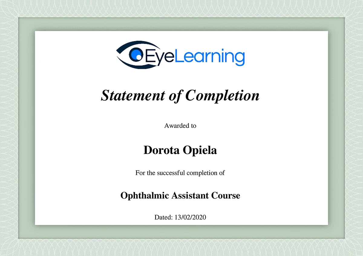 Congratulations to our Business Manager, Dorota Opiela, for completing the Ophthalmic Assistant Course by Eye Learning.